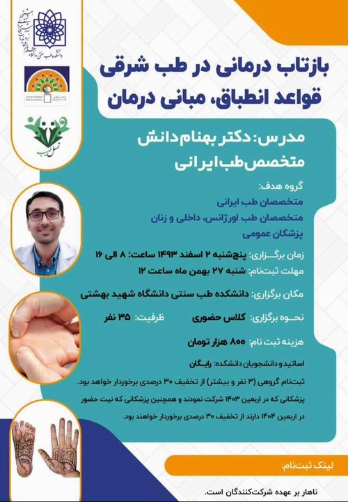 مکان برگزاری : دانشکده طب سنتی دانشگاه شهید بهشتی